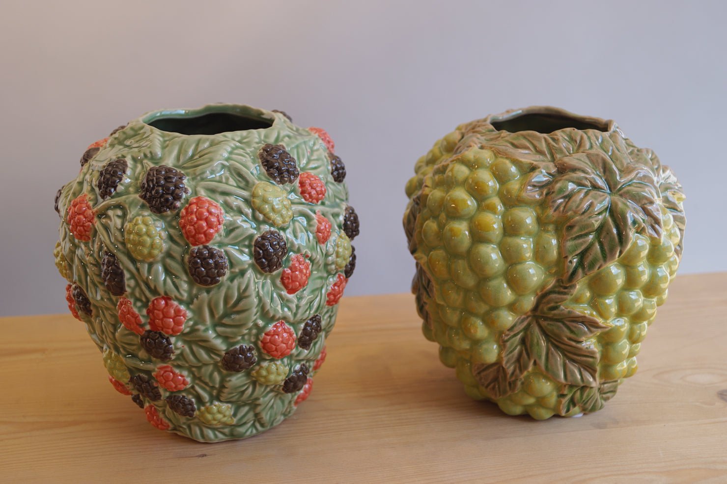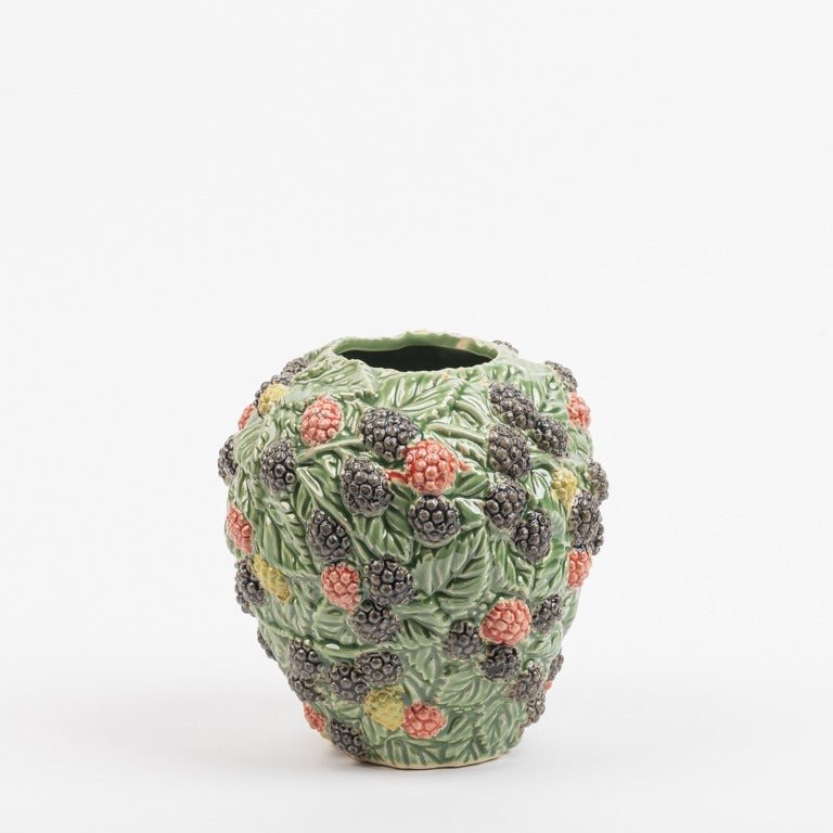 Vaas met decoratie van bramen in fijn geglazuurd aardewerk 18 cm