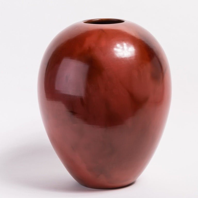 Handgedraaid aardewerk vaas met prachtig mat patine, vervaardigd met technieken die hun oorsprong vinden in de pre-Inca beschaving. Gebakken tot ca. 850 °C in hout-gestookte ovens om heldere en sterke kleuren te verkrijgen. Gekleurd met natuurlijke oxides en pigmenten. Door mango bladeren te verbranden in de oven krijgt de vaas zijn donkere schaduwen. Het oppervlak is voor het bakken gepolijst met een platte steen om de kleuren sprekender te maken en het oppervlak zijn zijden glans te geven. De vazen zijn in kleine werkplaatsen vervaardigd. Niet waterdicht, geleverd met een extra binnenvaas. Schoonmaken met een droge doek.