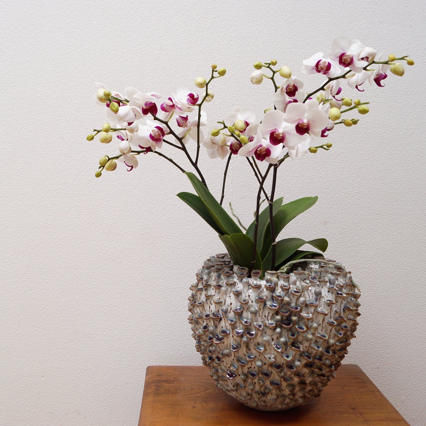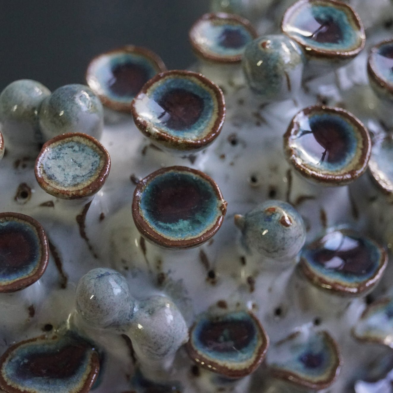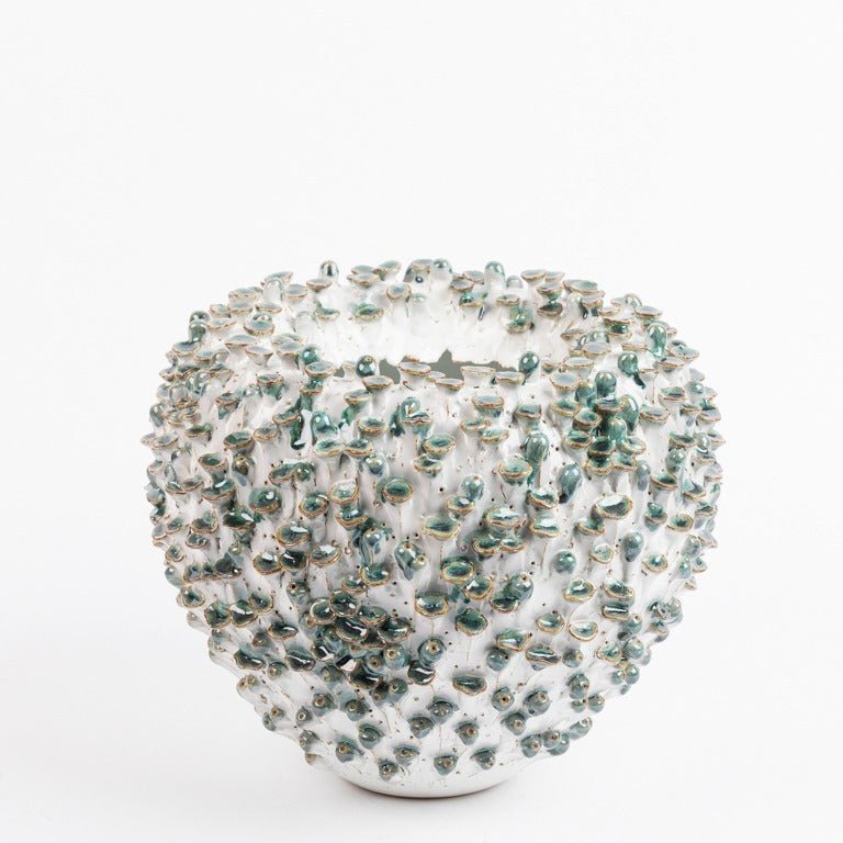 Een variant in de bekende "Golf" serie: teal. De vazen zijn handgevormd en in meerdere kleuren geglazuurd. Met of zonder bloemen of planten, zijn het zeer artistieke en decoratieve objecten in huis. In een aantal kleurvarianten en maten leverbaar.