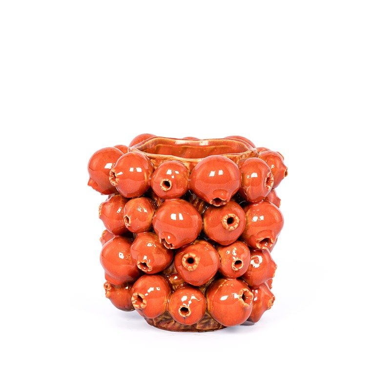 Granaatappel vaas oranje H 16 cm, D 18 cm