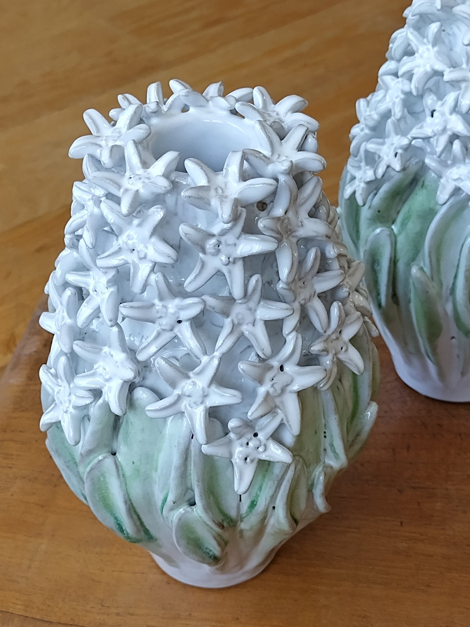 Kleine handgevormde steengoed Luffa vaas van des Pots. De producten van Des Pots mogen niet in webshops worden verkocht.