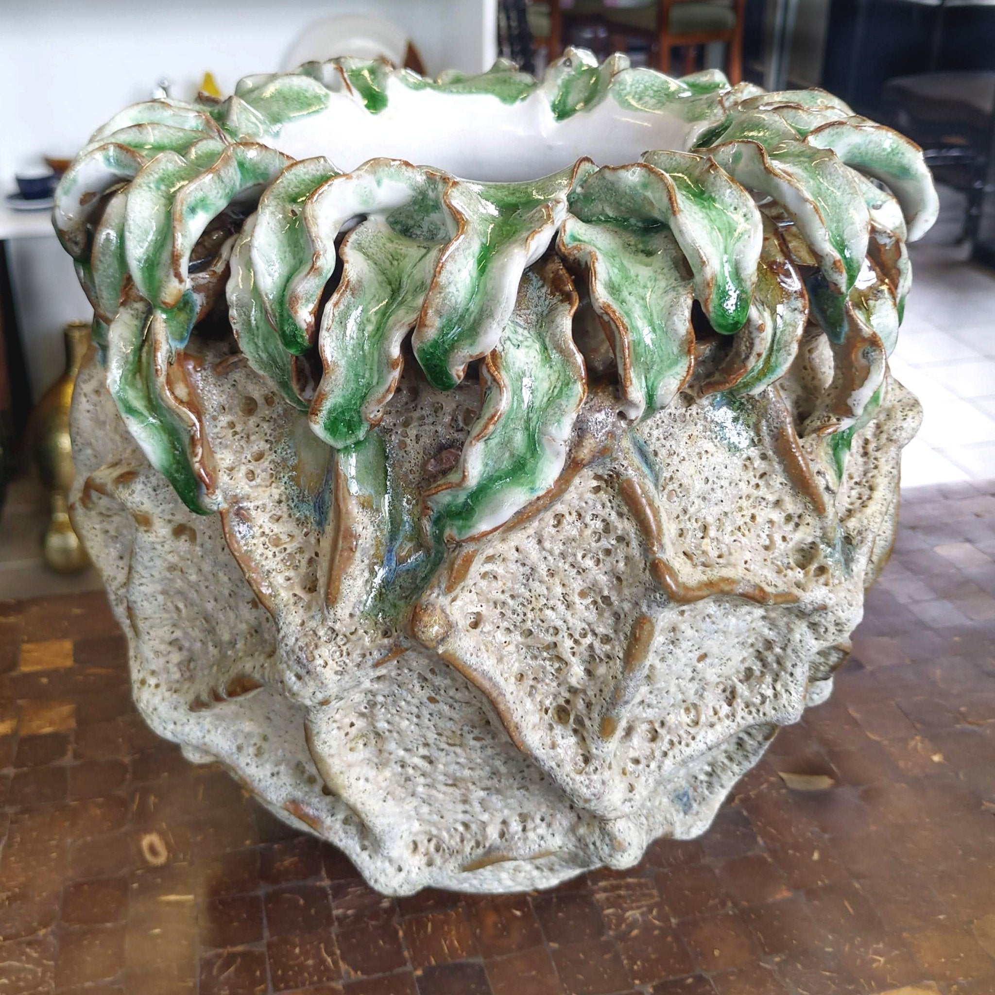 Grote handgevormde steengoed Luffa vaas van des Pots. De producten van Des Pots mogen niet in webshops worden verkocht.