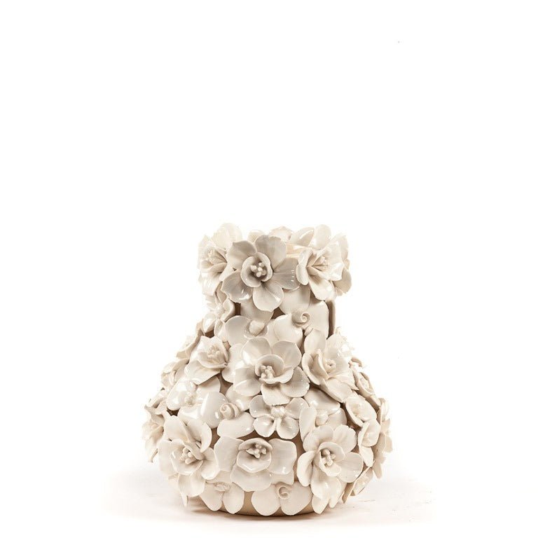Decoratieve porseleinen vaas met witte bloemen h.17 cm