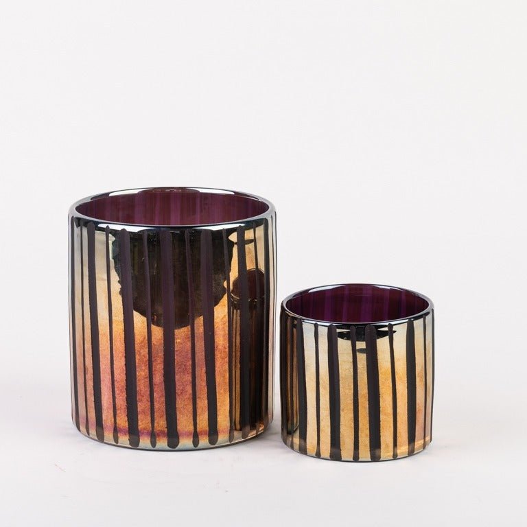 Glazen pot met luster en uitgefreesde lijnen, te gebruiken als sfeerlicht, bloempot of vaas.