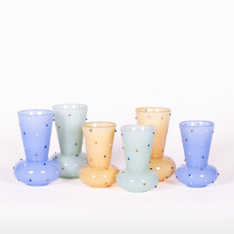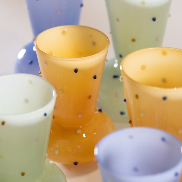 Bolvaasje transparant glas met gekleurde stippen h.14, diameter 8 cm