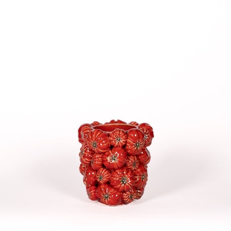 Vaas met rode tomaten, h. 18 cm, diameter 15 cm.