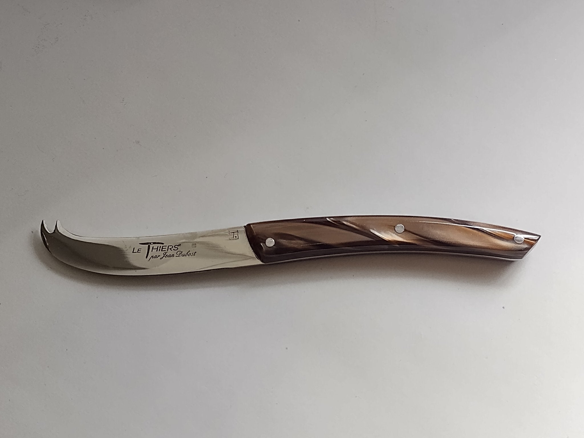 Het mes heeft de vorm van "Le Thiers", het lokale streekmes uit de stad Thiers in Frankrijk, met zijn enigszins afgekapte heft.