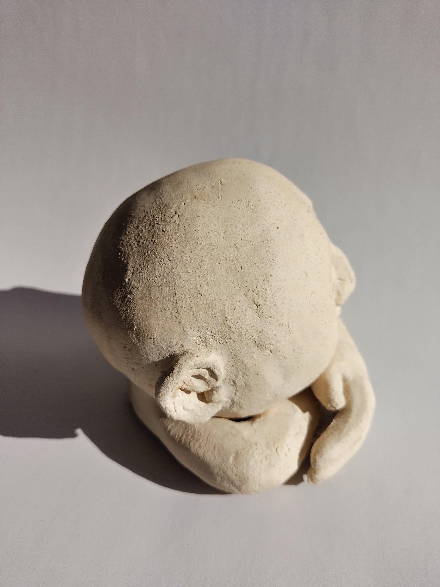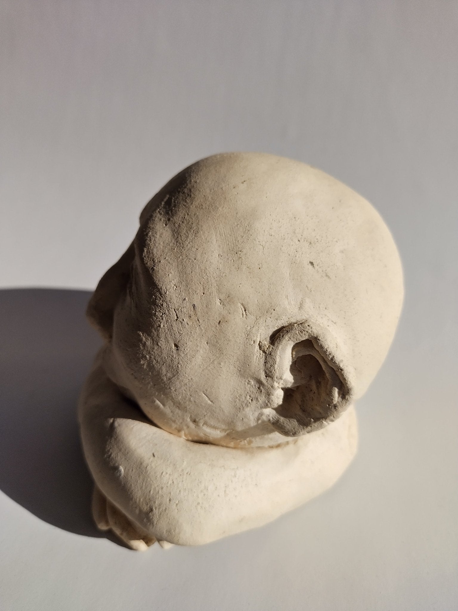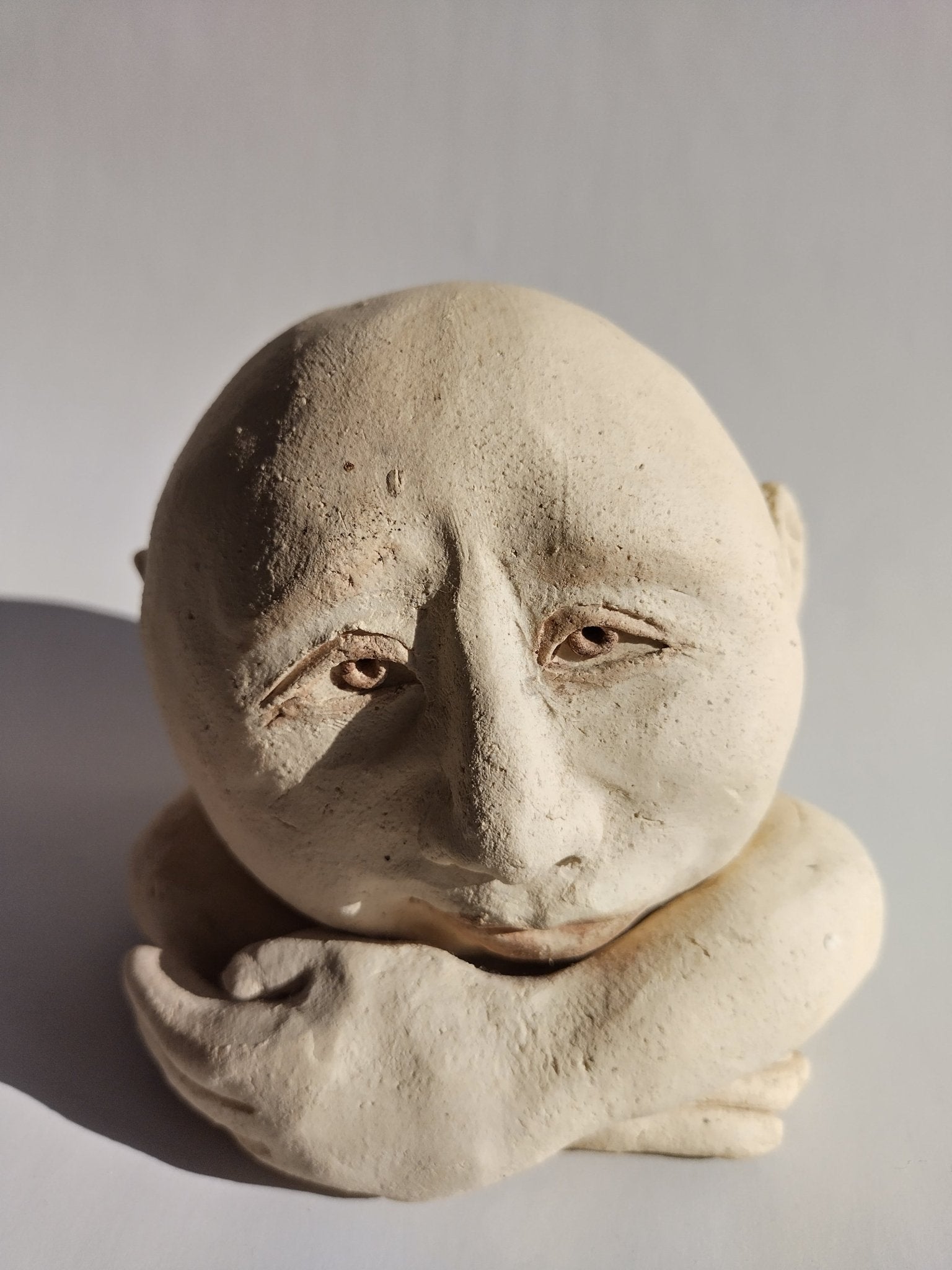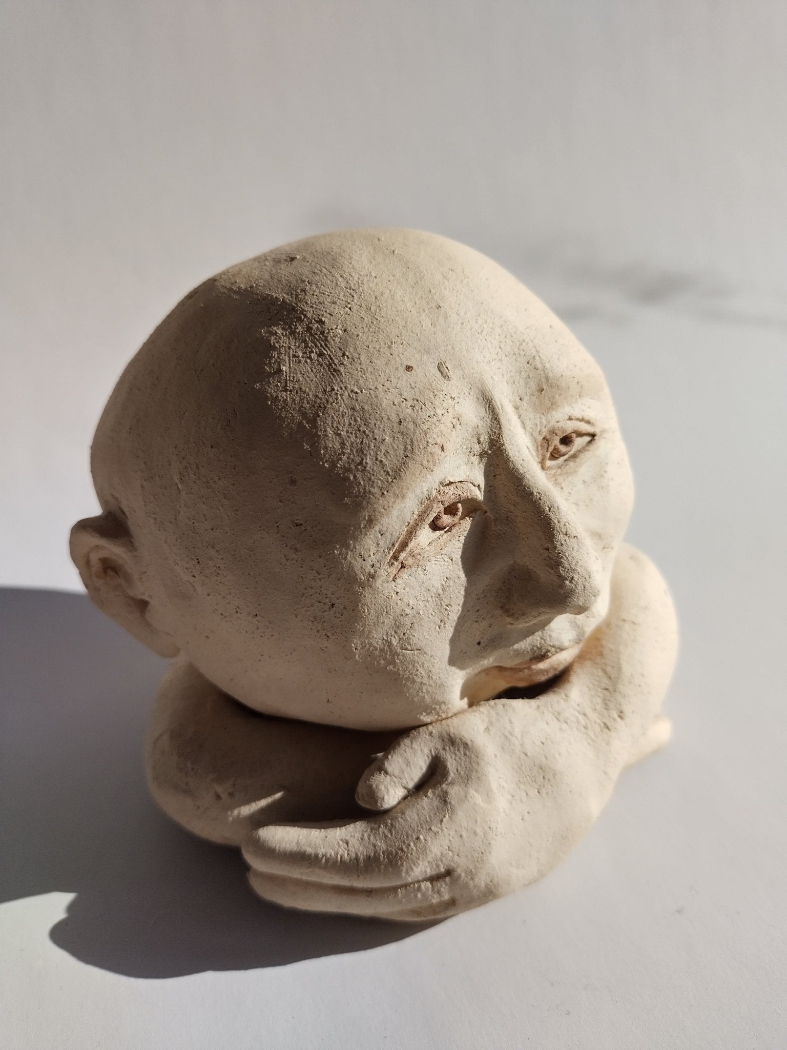Het leven vanuit d buik of vanuit het hoofd. Ik maak dikwijls beelden met grote hoofden of kleine maar dan met een heel groot lichaam.