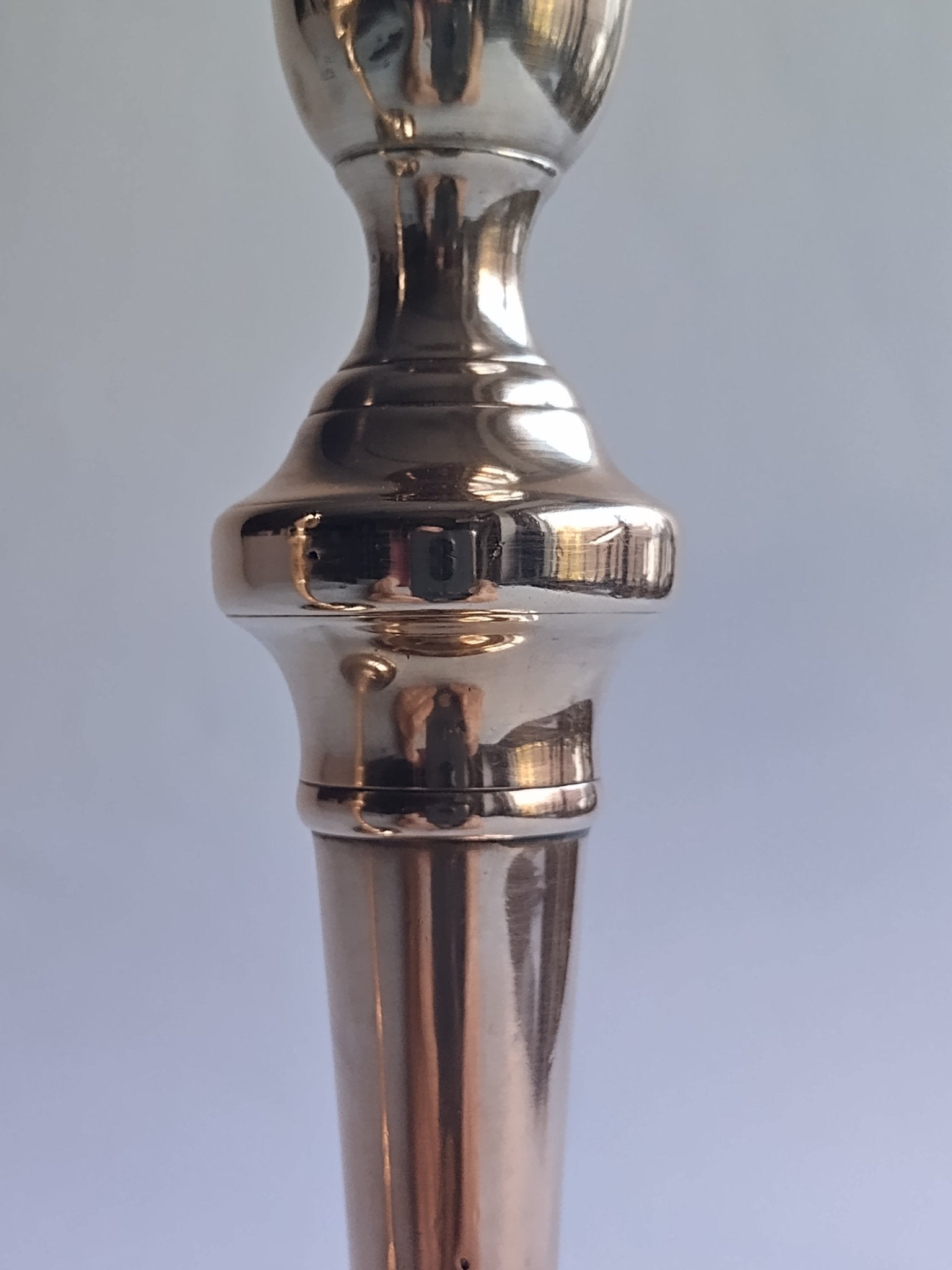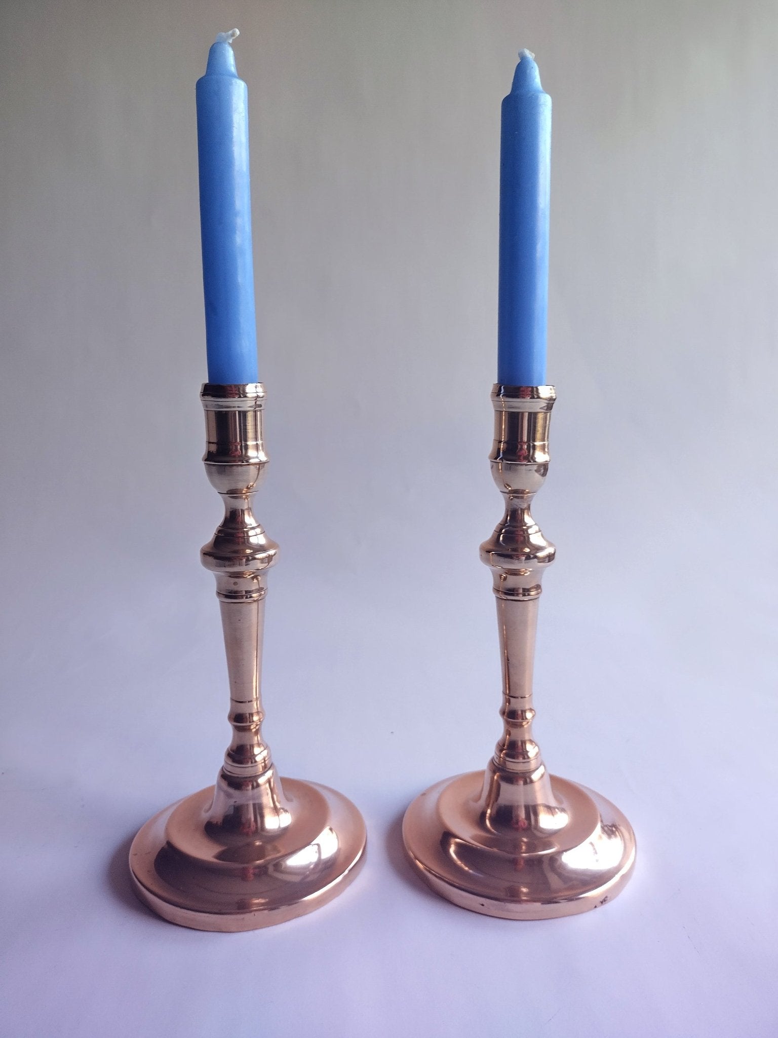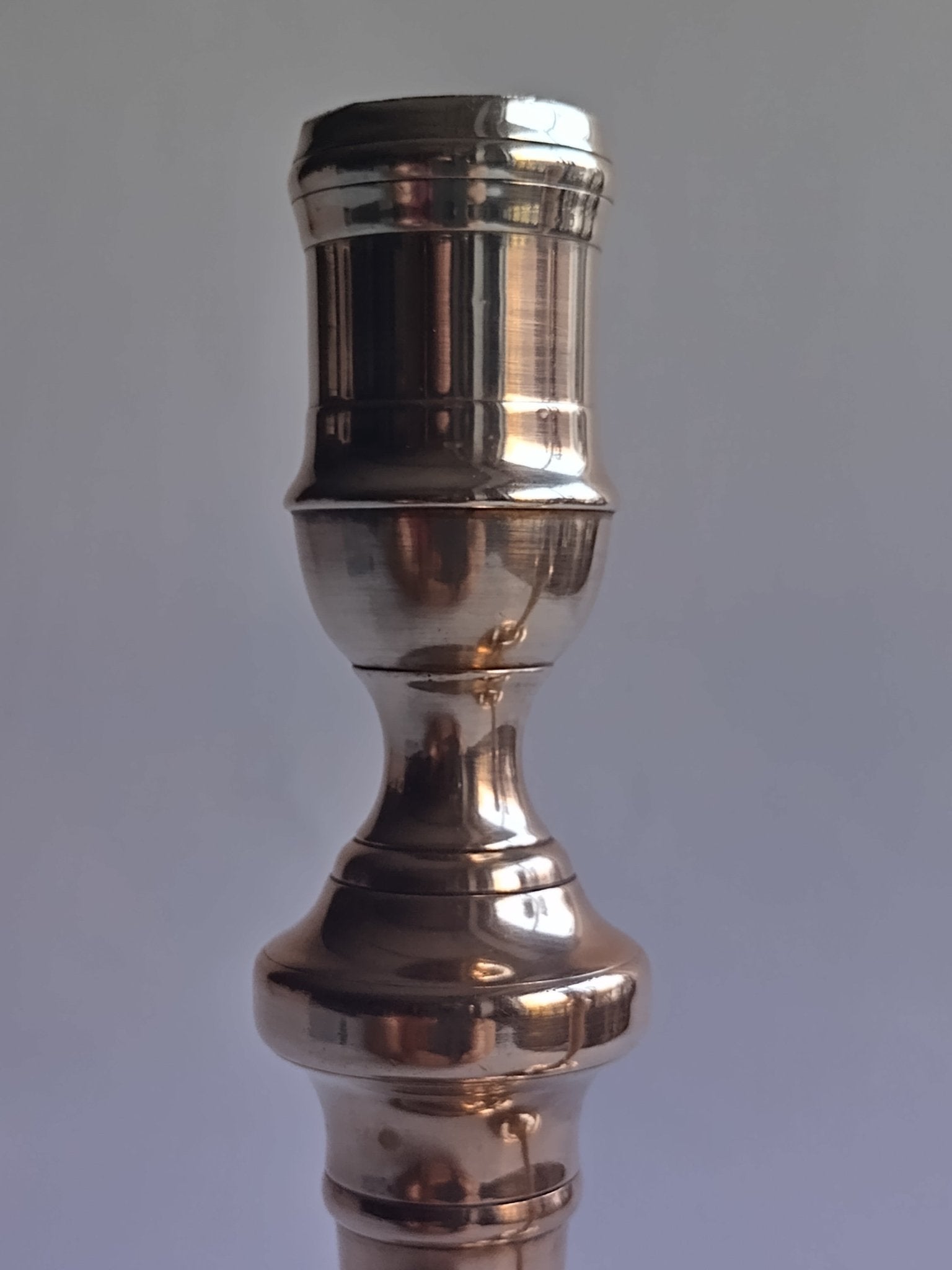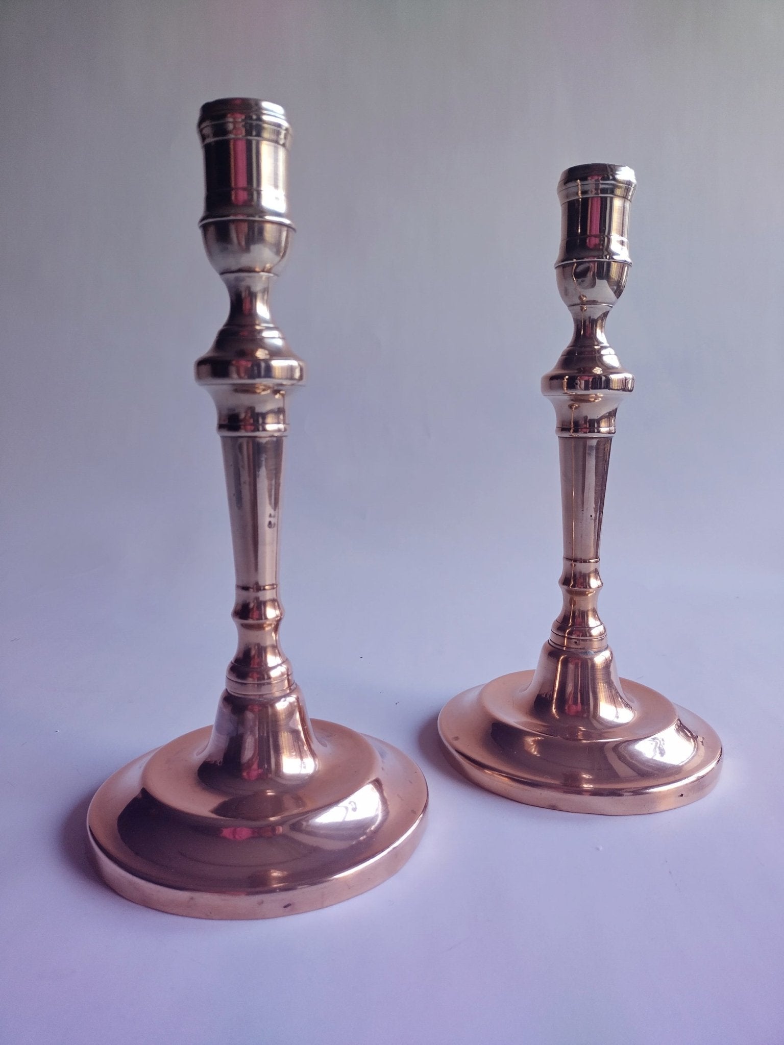 De meeste antieke kandelaars hebben een goudgele glans doordat ze in brons zijn gegoten. Maar soms kom je een paar tegen dat onmiskenbaar van koper is gemaakt, waarbij het metaal de kenmerkende roodachtige gloed heeft. Het maakt de kandelaars sfeervol en onderscheidend.