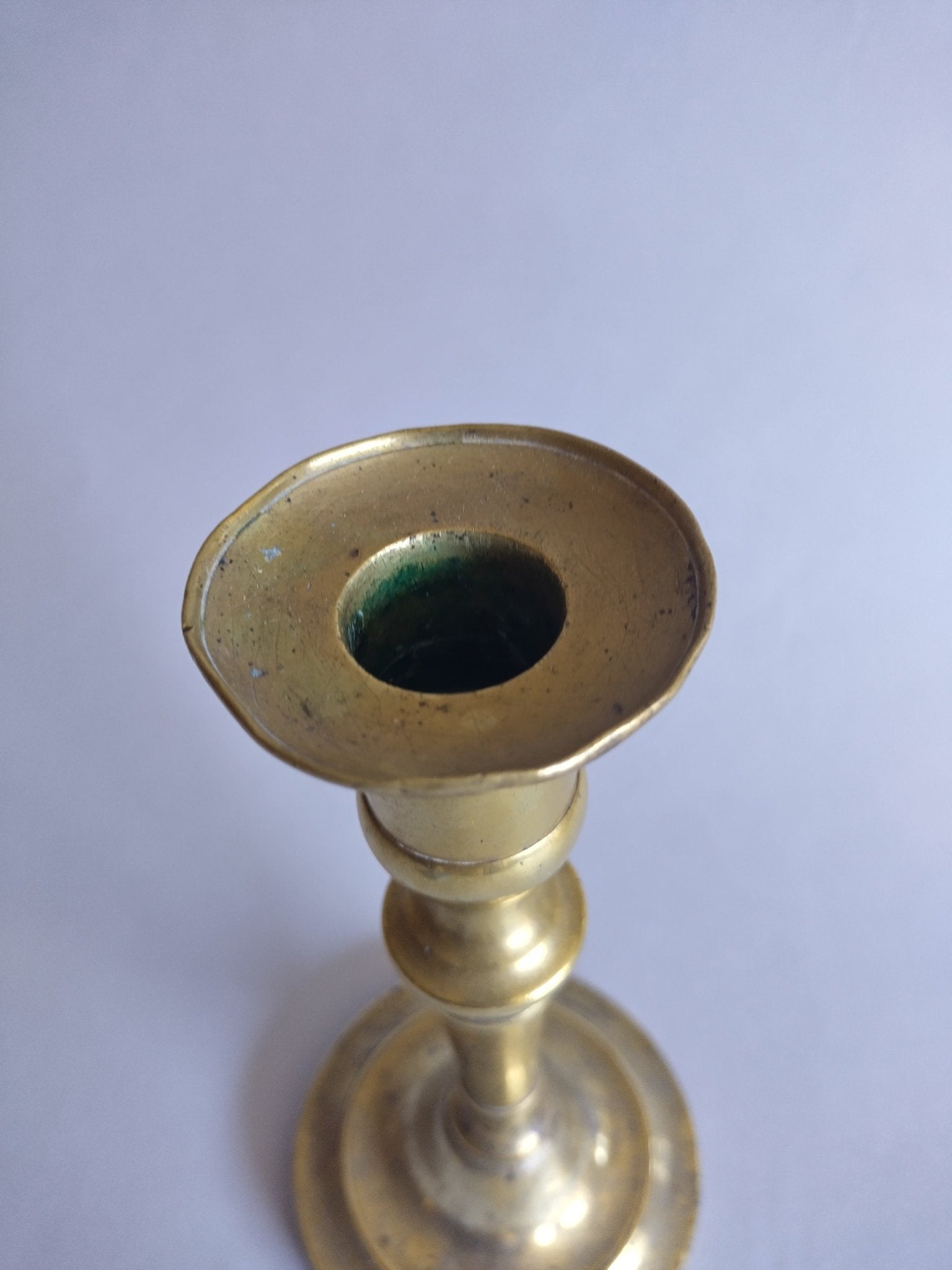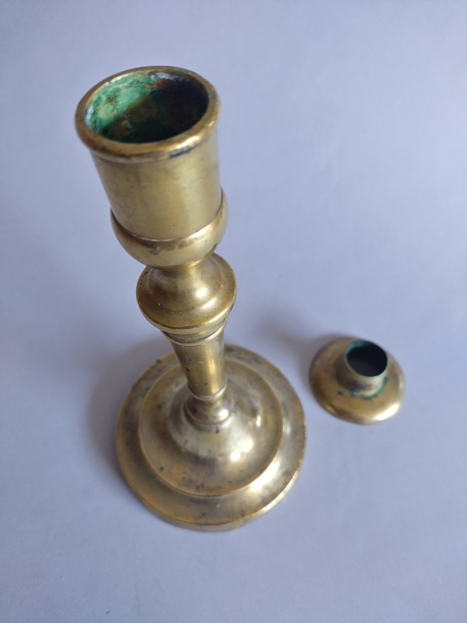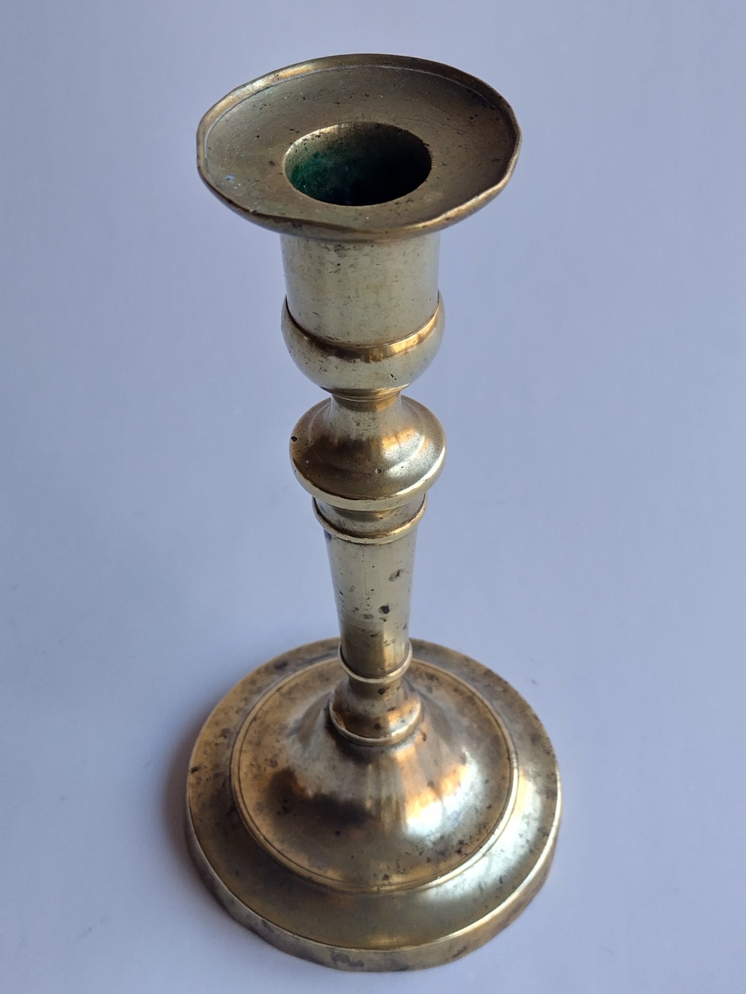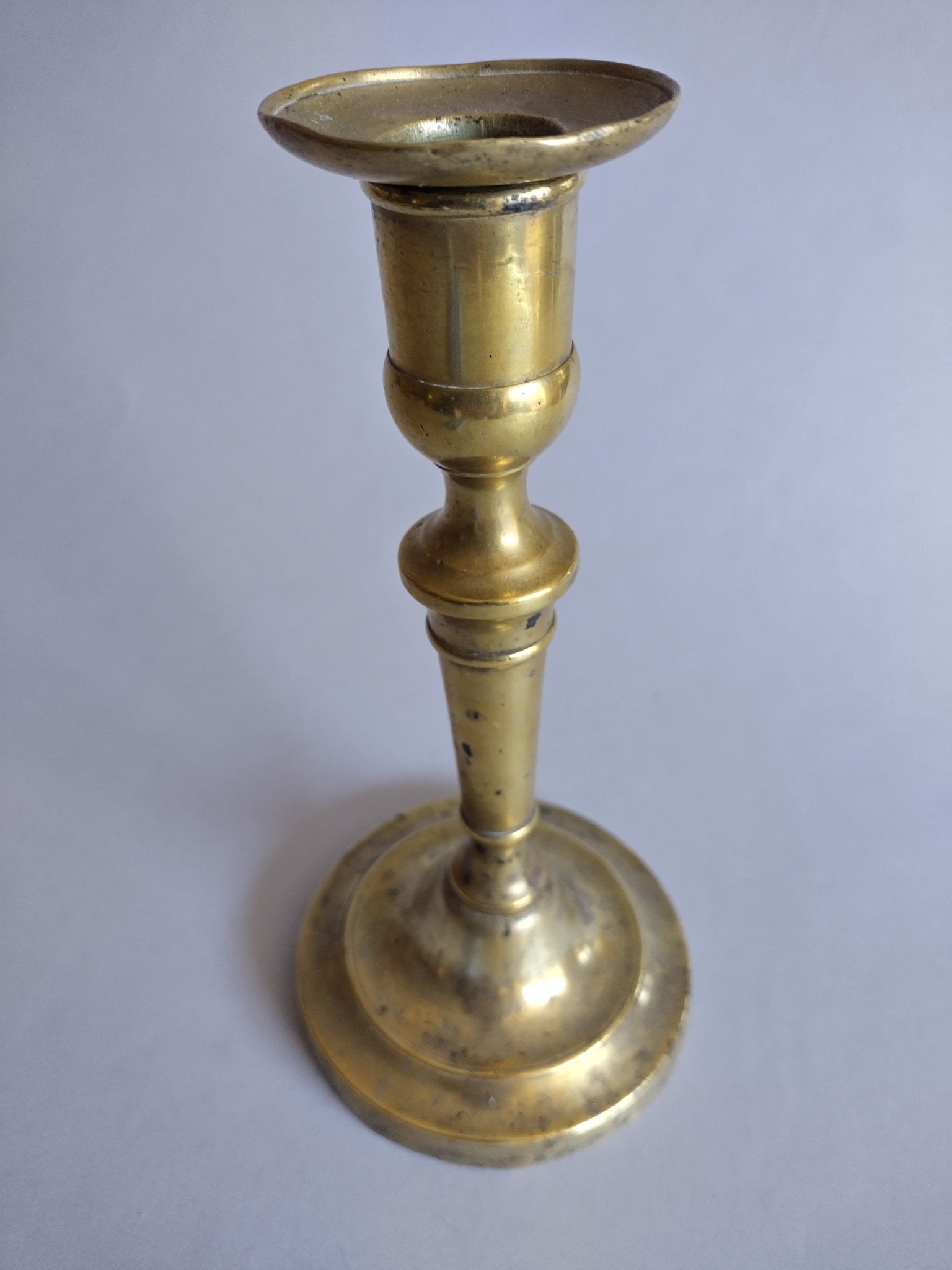 Messing kandelaar, Frankrijk 1850, h. 20,2 cm, diameter 10,3 cm.