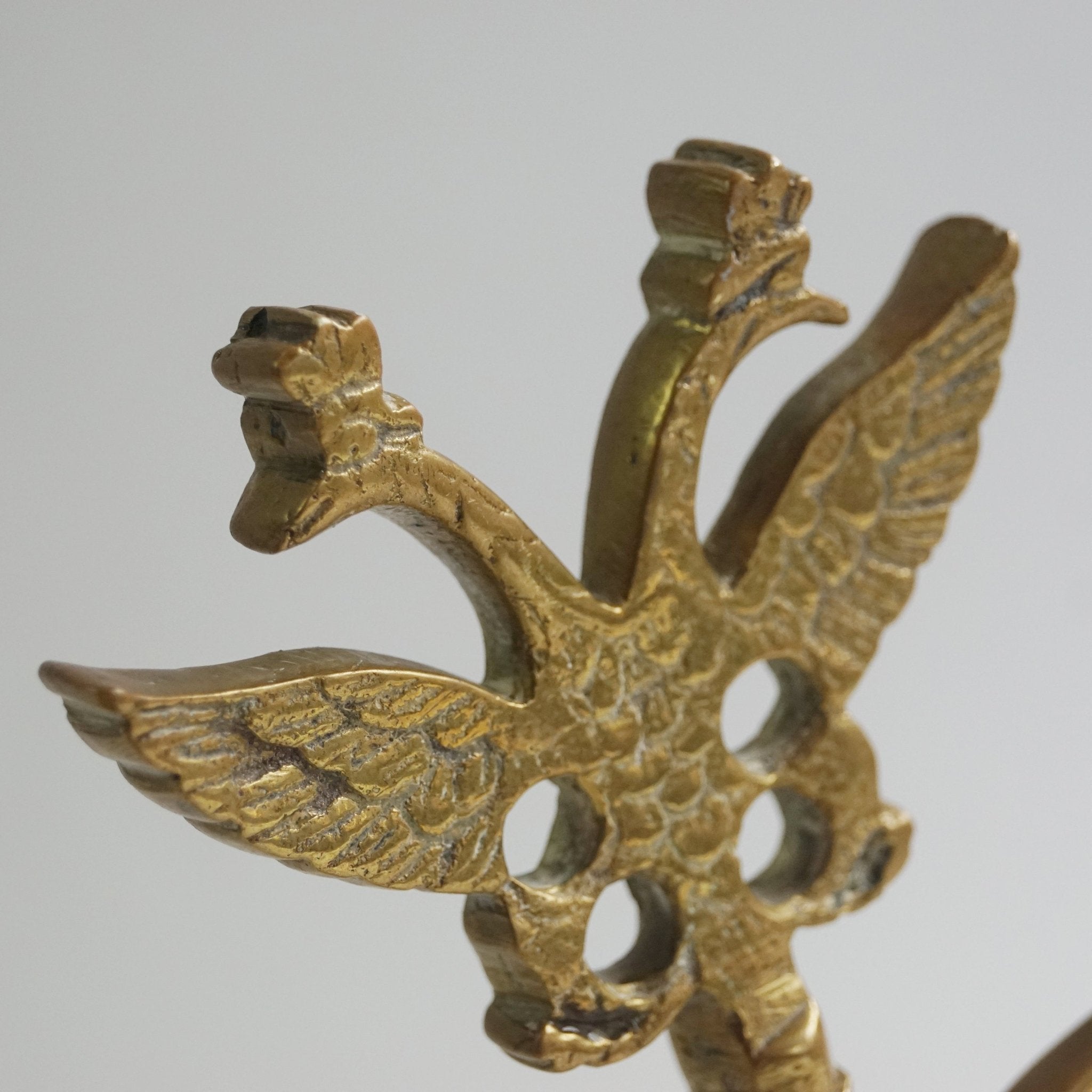 Midden-Europese bronzen kandelaar met twee armen en bekroond met een adelaar met twee koppen