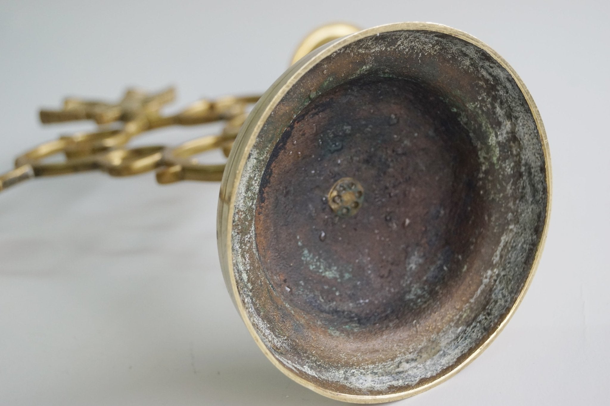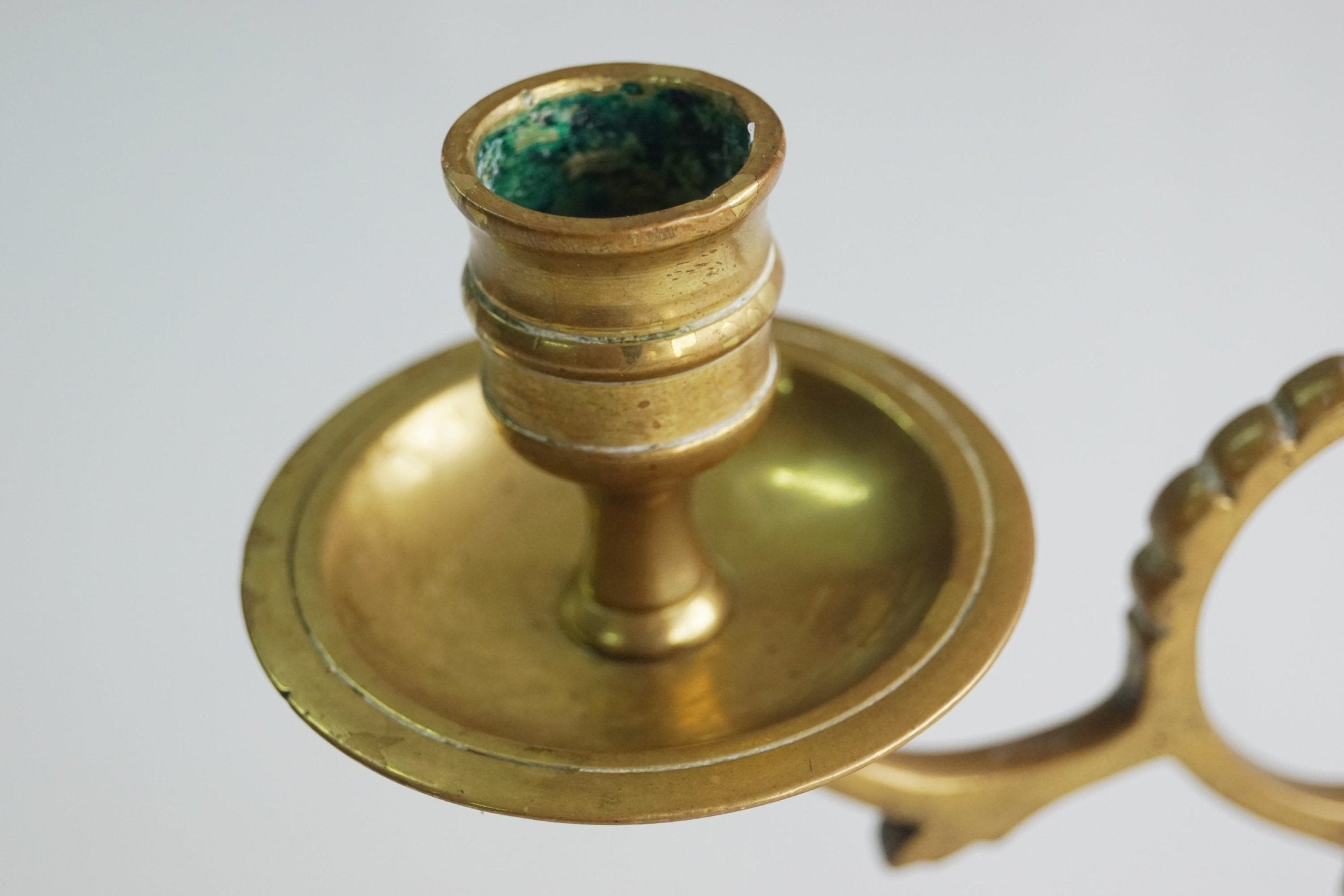 De kandelaar kan waarschijnlijk rond 1910 gedateerd worden. Op enkele gebruikssporen en enkele vlekjes in het brons na in uitstekende staat.