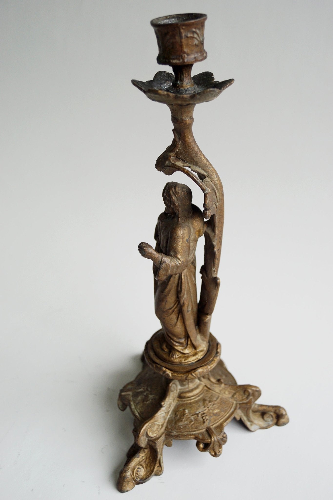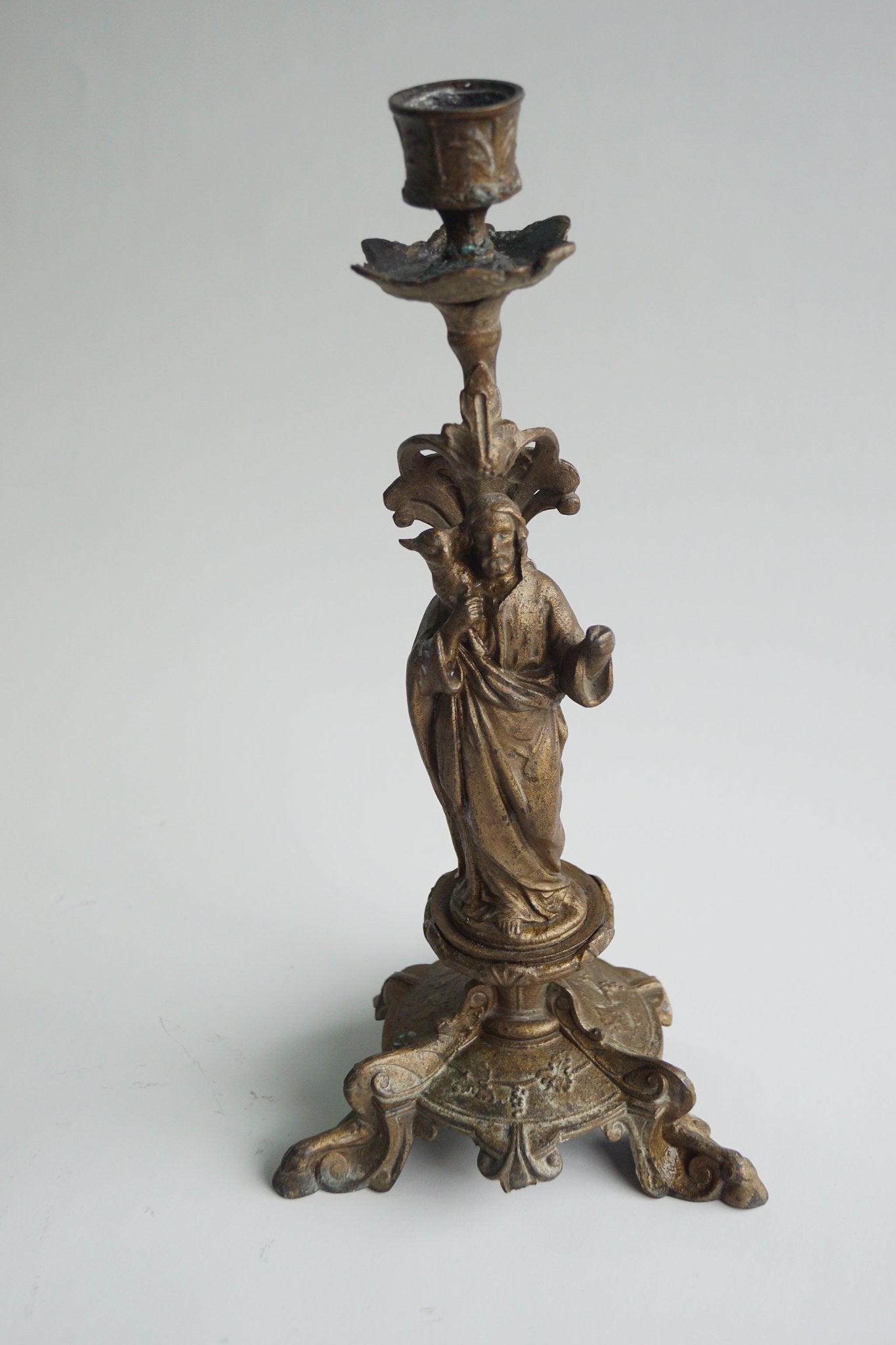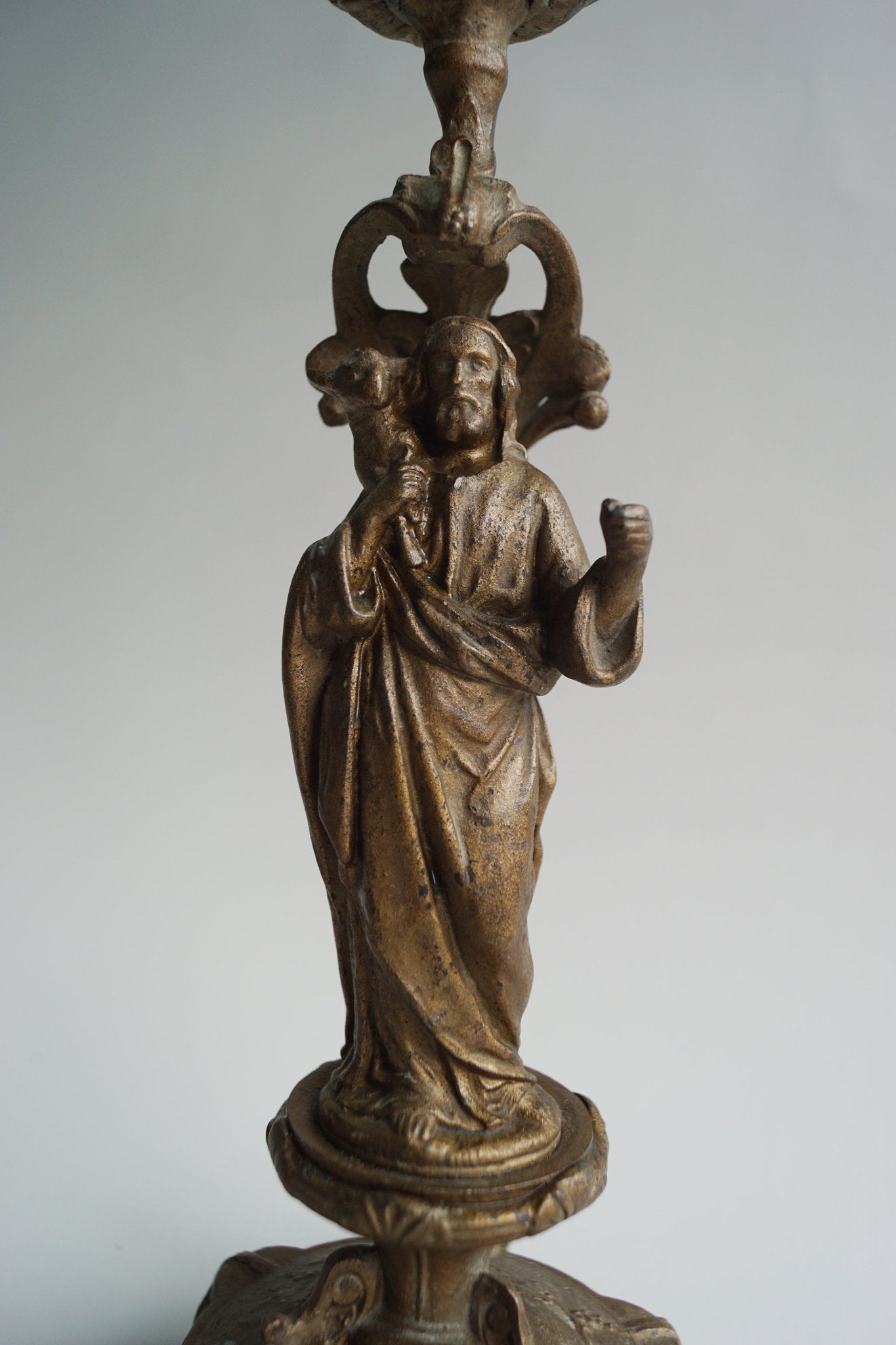 Negentiende-eeuwse Franse kandelaar met Christus als goede herder