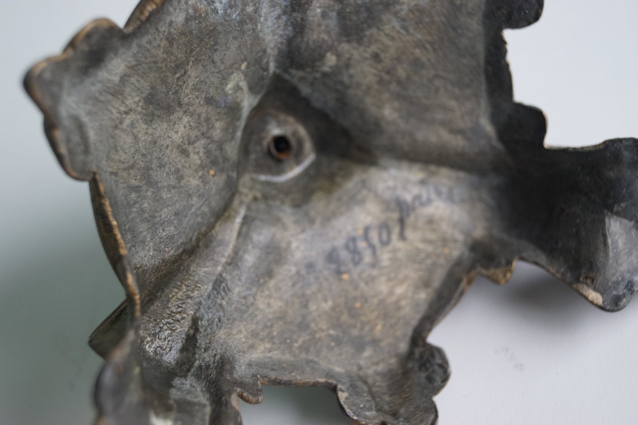 Onderop de met inkt geëtste voet van de kandelaar staat een artikelnummer "2850" en het Franse woord "paire", wat erop wijst dat het ooit een paar was. Wie zou er op de andere kandelaar hebben gefigureerd?