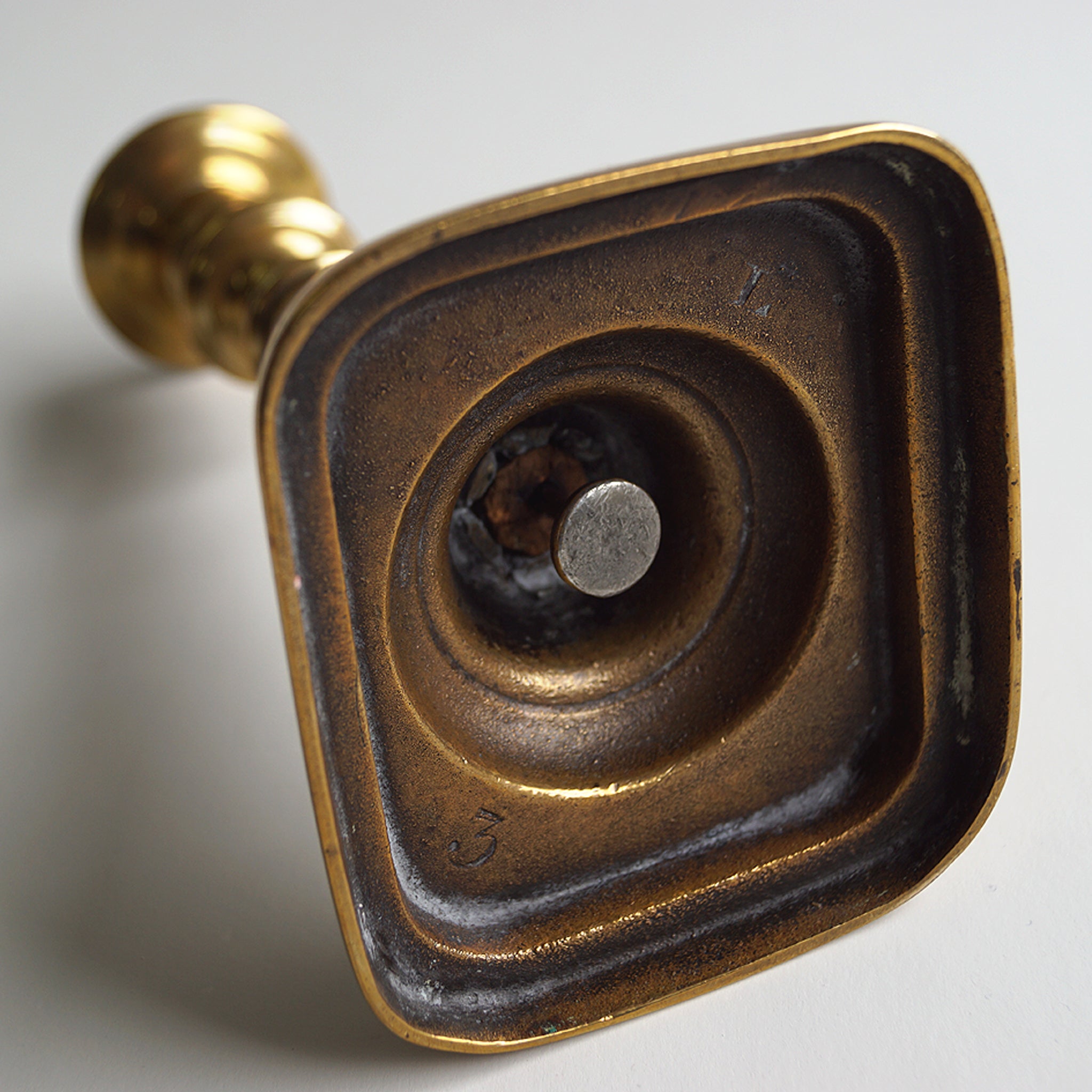 De steel is uit één stuk gegoten, evenals de voet. Aan de onderzijde zijn een "L" en een "3" gestempeld.