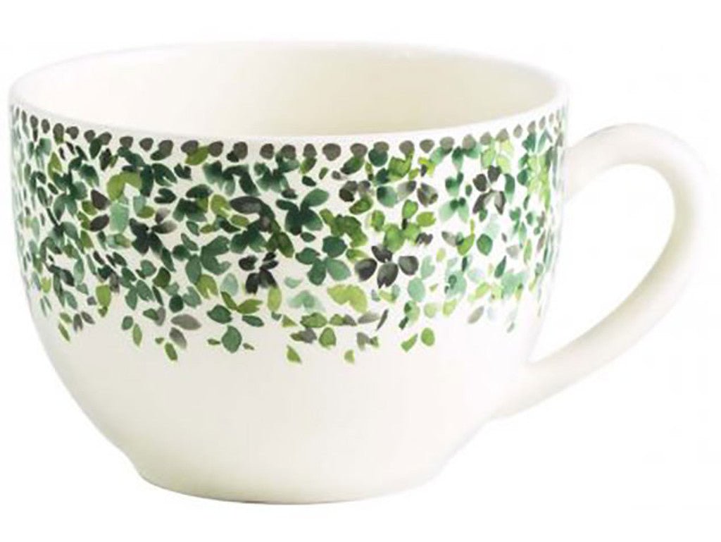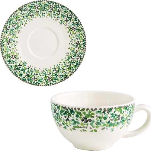 Songe van de Faïencerie de Gien heeft een prachtig decor met een rand die bestaat uit talloze kleine blaadjes in verschillende tinten van groen. Het decor past bij veel van Gien's patronen en is een interessante manier om patronen te combineren zonder te overweldigen. Met dit ontwerp van Isabelle de Borchgrave presenteerde Gien een geraffineerd, elegant en tijdloos servies.
