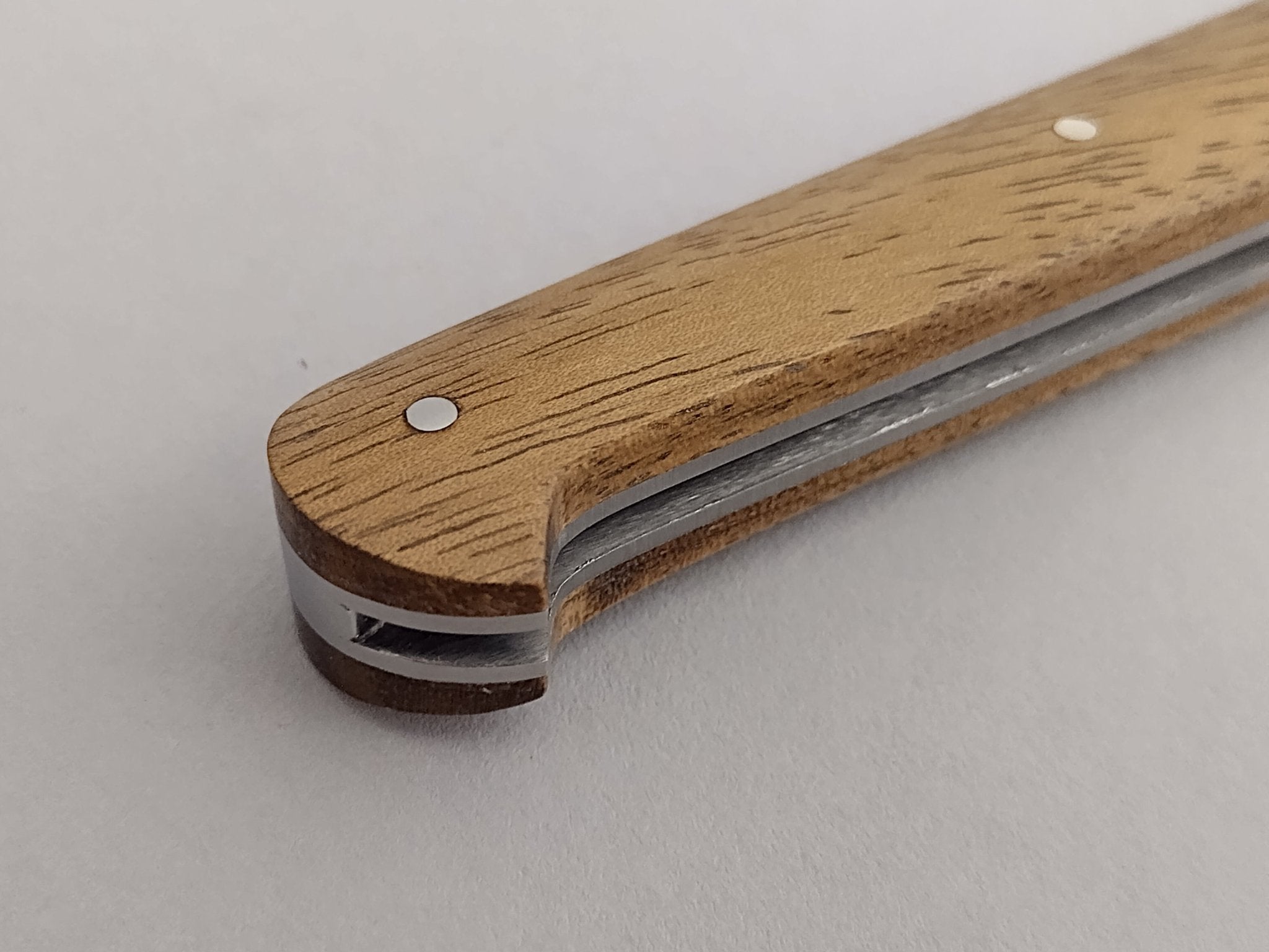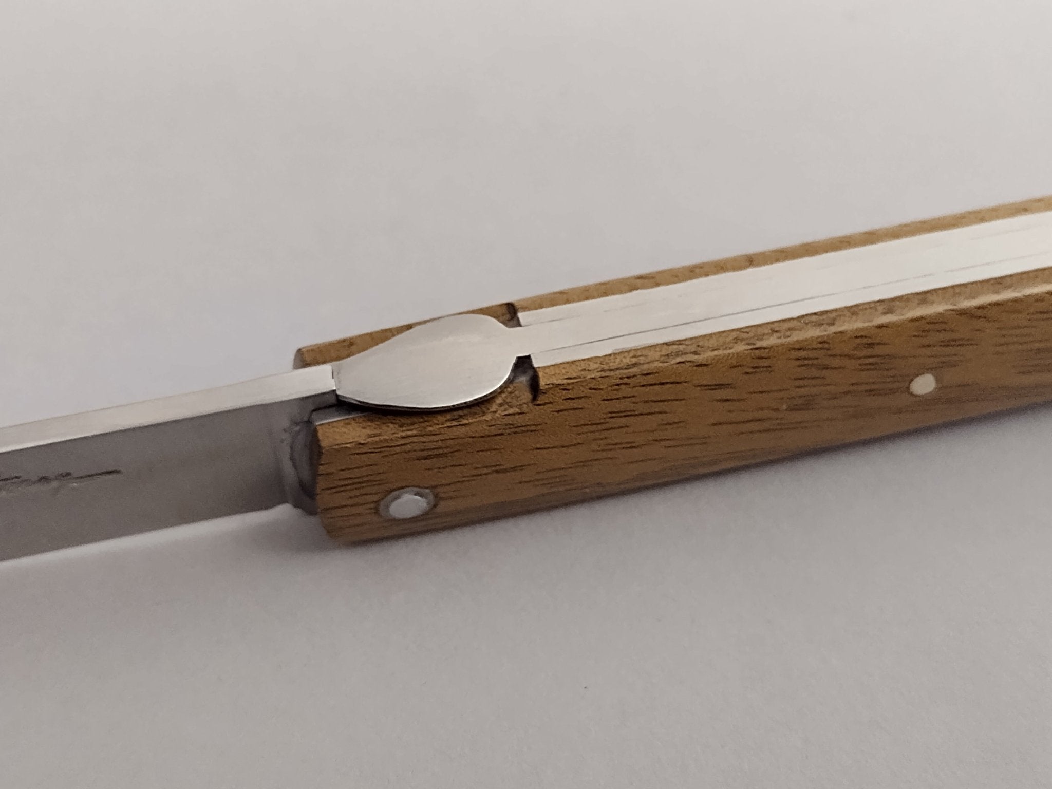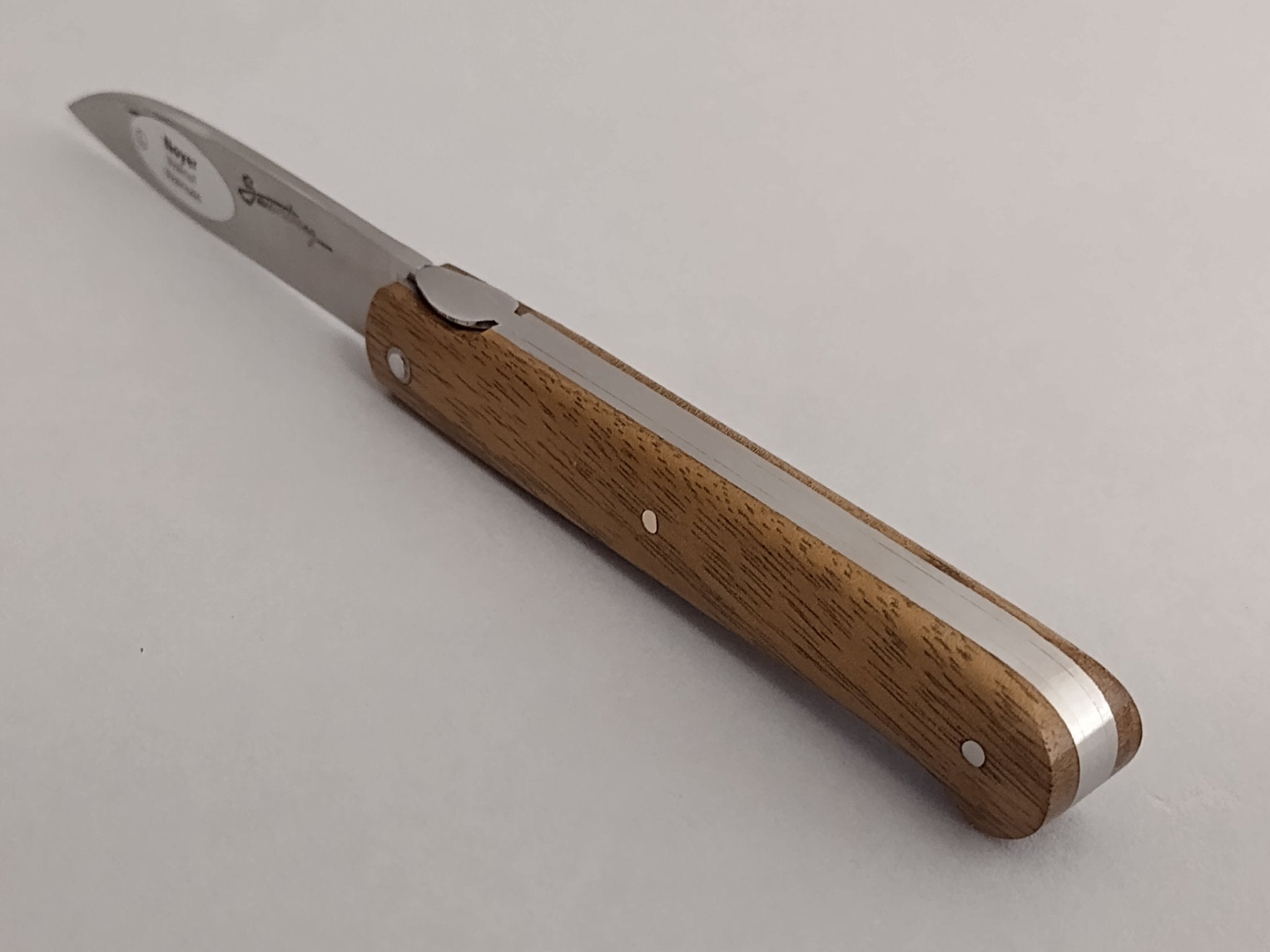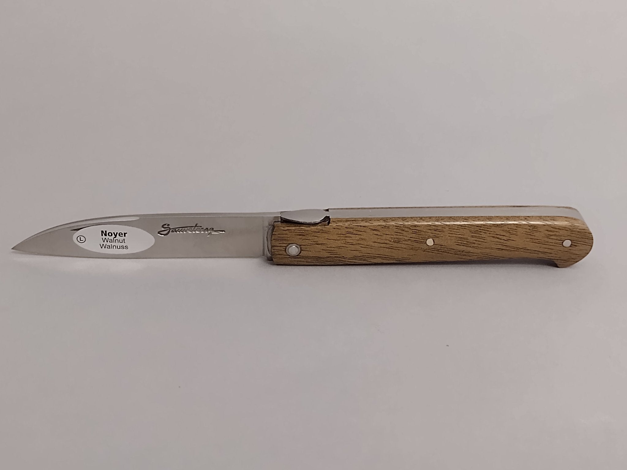Zakmesje, vervaardigd door Sauveterre, met roestvrij stalen lemmet 9 cm met notenhouten heft.